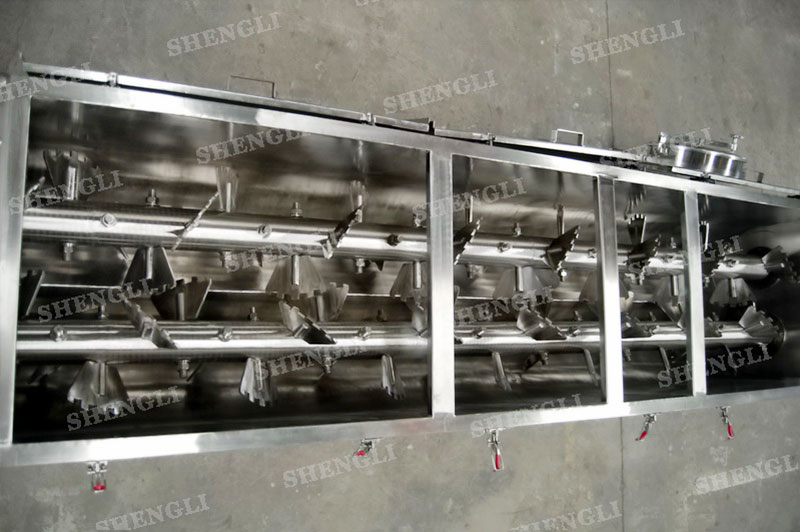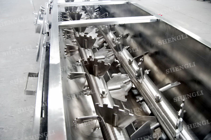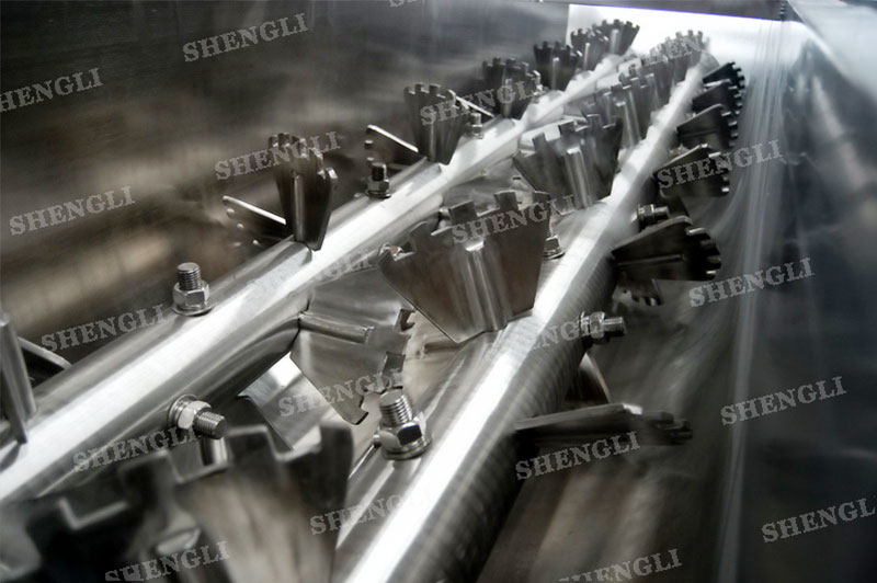 描述:雙軸連續(xù)式攪拌機(jī)采用雙軸交叉結(jié)構(gòu),通過重疊的嚙合空間,結(jié)合齒形葉片,能夠快速混合物料。設(shè)備臥式安裝,進(jìn)行連續(xù)式生產(chǎn)模式,上蓋采用快捷密封,便于物料清理以及衛(wèi)生控制。設(shè)備的齒形槳葉可快速拆裝更換,并可進(jìn)行攪拌效率的調(diào)整。