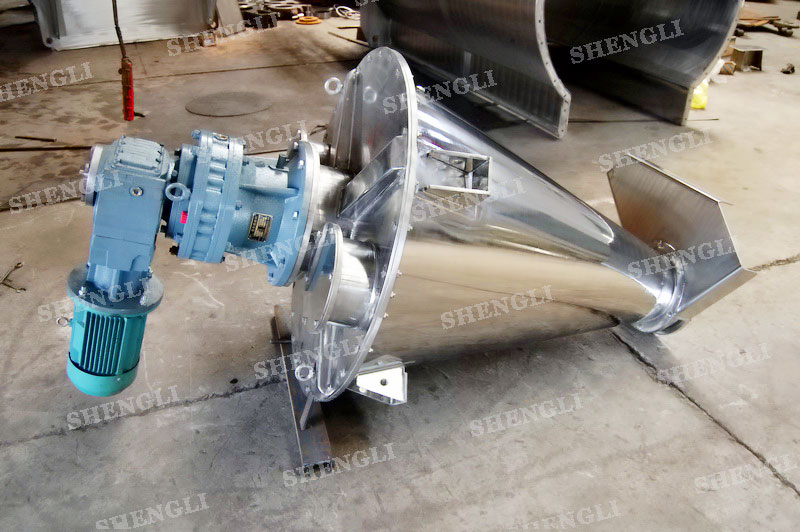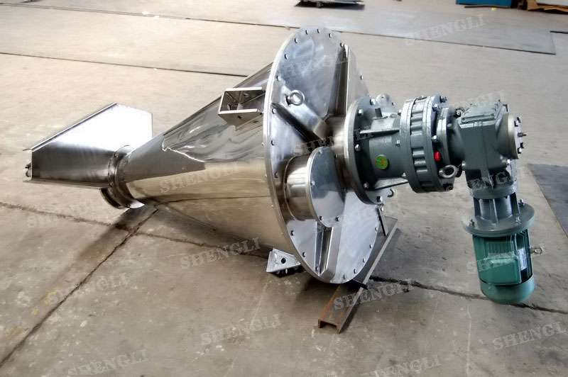 描述:錐形雙螺旋混合機(jī)內(nèi)部安裝非對(duì)稱傾斜螺旋,雙螺旋自身旋轉(zhuǎn),提升物料,并有公轉(zhuǎn)減速箱驅(qū)動(dòng),沿錐體中心軸公轉(zhuǎn),360度攪拌物料,擁有非破壞性攪拌以及快速且無(wú)殘留卸料的特點(diǎn)。該設(shè)備配置氣動(dòng)錯(cuò)位閥,內(nèi)外表面做鏡面處理,錐體中心軸加噴液裝置。