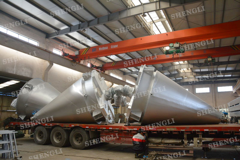 描述:雙螺旋攪拌機(jī)內(nèi)部安裝非對(duì)稱傾斜螺旋,雙螺旋自身旋轉(zhuǎn),提升物料,并有公轉(zhuǎn)減速箱驅(qū)動(dòng),沿錐體中心軸公轉(zhuǎn),360度攪拌物料,擁有非破壞性攪拌以及快速且無(wú)殘留卸料的特點(diǎn)。該設(shè)備配置自轉(zhuǎn)、公轉(zhuǎn)一體式驅(qū)動(dòng),內(nèi)設(shè)中心軸線噴液噴頭,筒體出料口配置球面閥。