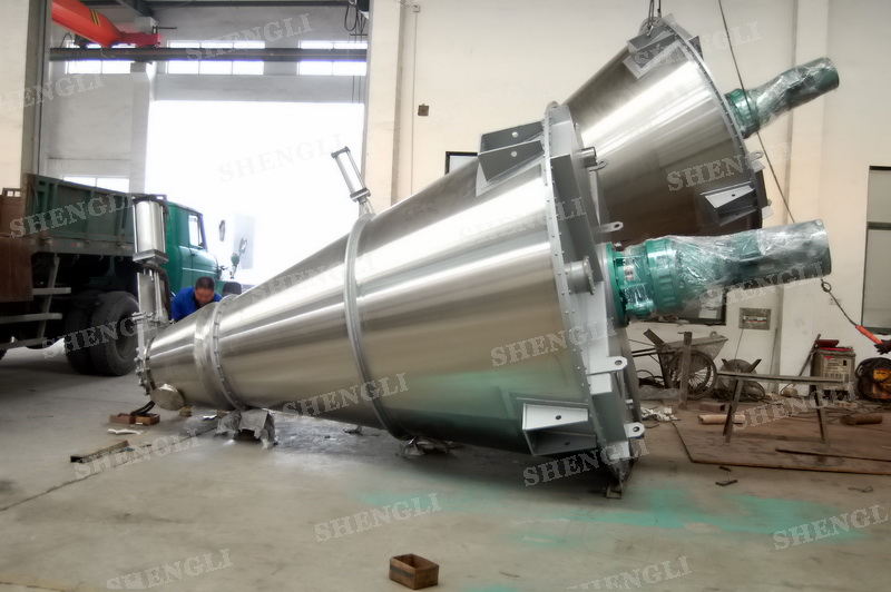 描述:螺旋混合機(jī)內(nèi)部安裝非對稱傾斜螺旋,雙螺旋自身旋轉(zhuǎn),提升物料,并有公轉(zhuǎn)減速箱驅(qū)動,沿錐體中心軸公轉(zhuǎn),360度攪拌物料,擁有非破壞性攪拌以及快速且無殘留卸料的特點(diǎn)。該設(shè)備配置內(nèi)加熱夾套,內(nèi)外表面做拉絲處理,筒體底部配置氣動閘閥,開設(shè)投料口、排氣口等。