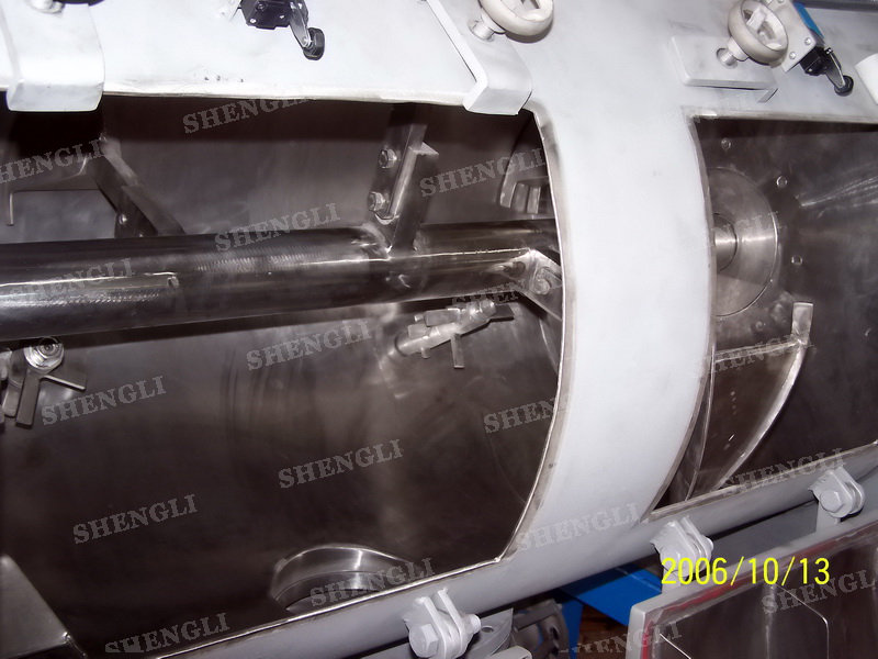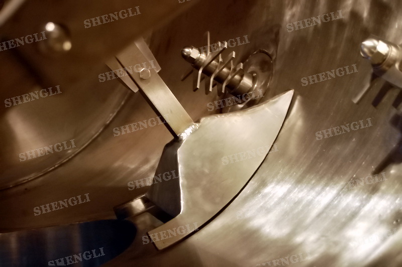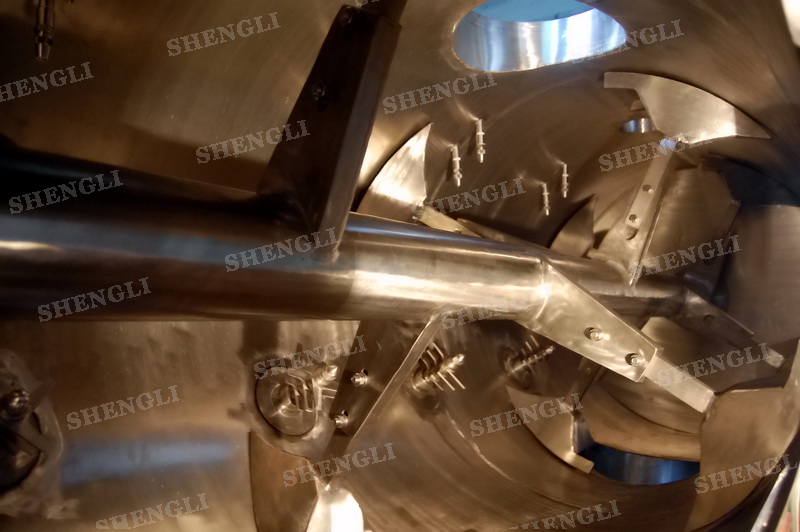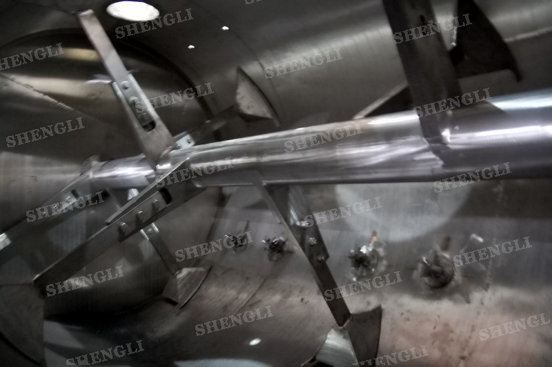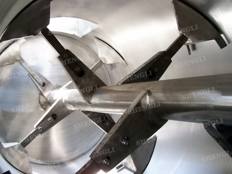 描述:犁刀混合機采用臥式圓柱筒體,內(nèi)設(shè)平行主軸,主軸上安裝若干犁式刀頭,通過較快的旋轉(zhuǎn)速度,分割、重合物料,實現(xiàn)快速攪拌的功能,常結(jié)合1500-3000轉(zhuǎn)高速剪切飛刀相互作用。