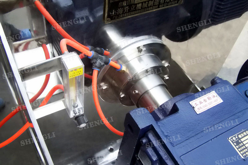 設備配置:配置K系列減速機,直角安裝;搭載兩臺3KW的高速飛刀;開設快開式檢修門及投料口;出料口采用氣動翻板閥;主軸與飛刀主軸采用氣密封;飛刀處設加液噴頭;設備內、外表面鏡面拋光。