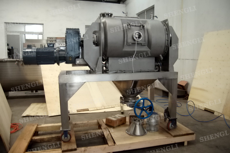 設(shè)備配置:配置F系列減速機(jī),平行安裝;筒體外設(shè)導(dǎo)熱介質(zhì)夾套;開(kāi)設(shè)快開(kāi)式檢修門;出料口采用氣動(dòng)翻板閥;設(shè)備主軸采用氣密封;筒內(nèi)設(shè)加液噴頭;設(shè)備內(nèi)表面鏡面拋光、外表面噴砂亞光。