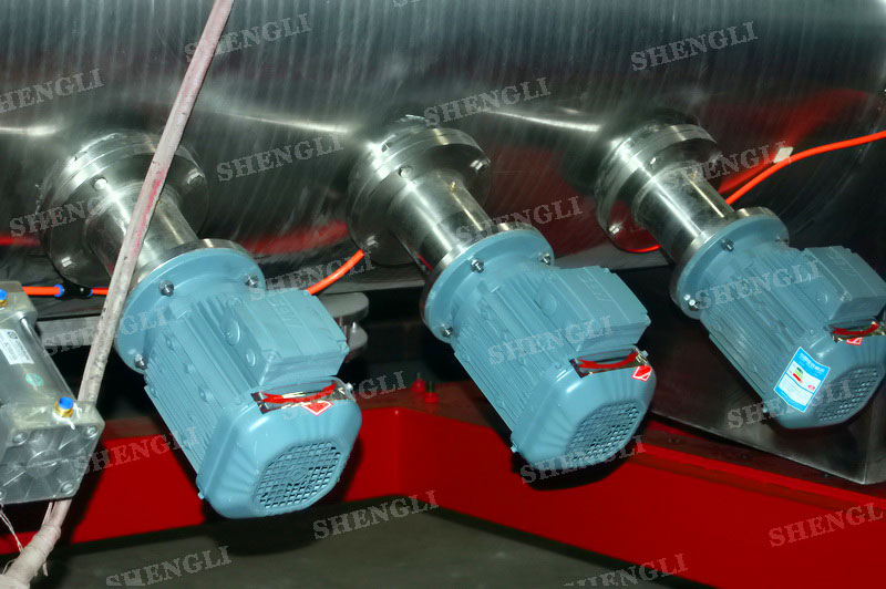 設(shè)備配置:配置SEW變頻電機(jī)K系列減速機(jī),直角安裝;搭載三臺3000轉(zhuǎn)每分鐘的高速飛刀;開設(shè)快開式檢修門;出料口采用氣動錯位閥;主軸與飛刀主軸采用氣密封;筒體上設(shè)氣動在線取樣閥;設(shè)備內(nèi)表面鏡面拋光、外表面拉絲亞光。
