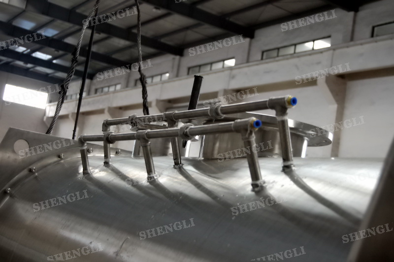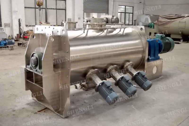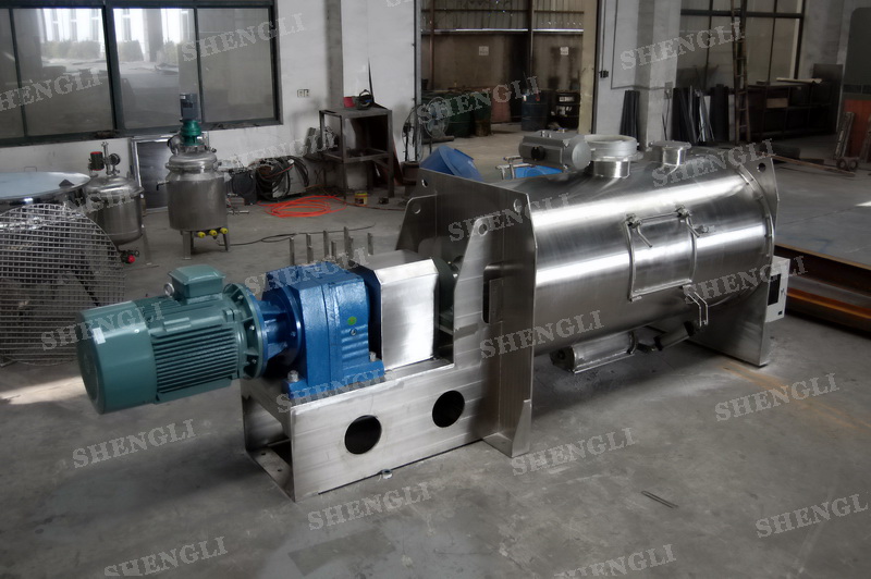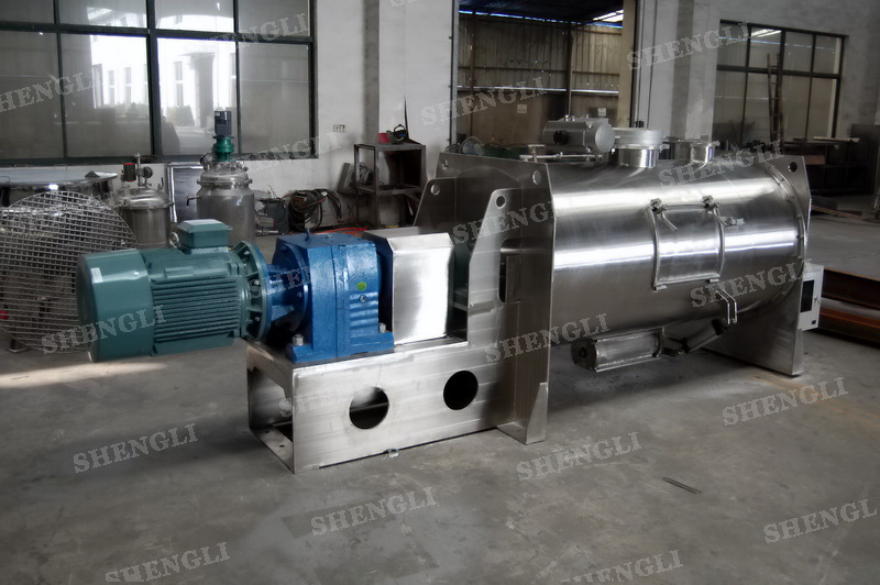 工作原理:犁刀混料機采用臥式圓柱筒體,內(nèi)設(shè)平行主軸,主軸上安裝若干犁式刀頭,通過較快的旋轉(zhuǎn)速度,分割、重合物料,實現(xiàn)快速攪拌的功能,常結(jié)合1500-3000轉(zhuǎn)高速剪切飛刀相互作用。