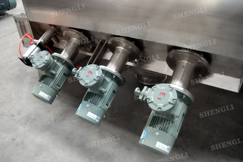 設(shè)備配置:配置R系列減速機(jī),直角安裝;搭載三臺(tái)3000轉(zhuǎn)每分鐘的高速飛刀;筒體外設(shè)導(dǎo)熱介質(zhì)夾套;筒側(cè)開(kāi)設(shè)快開(kāi)式檢修門附安全開(kāi)關(guān);出料口采用氣動(dòng)翻板閥;主軸與飛刀主軸采用氣密封;筒體上設(shè)氣動(dòng)在線取樣閥;設(shè)備內(nèi)表面鏡面拋光、外表面拉絲亞光。