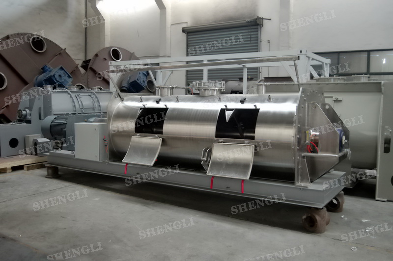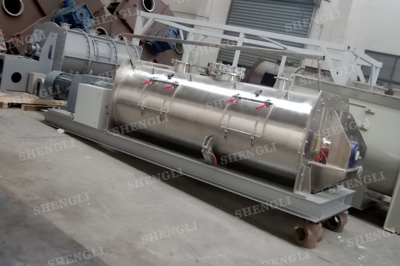 工作原理:犁刀臥式混合機采用臥式圓柱筒體,內(nèi)設(shè)平行主軸,主軸上安裝若干犁式刀頭,通過較快的旋轉(zhuǎn)速度,分割、重合物料,實現(xiàn)快速攪拌的功能,常結(jié)合1500-3000轉(zhuǎn)高速剪切飛刀相互作用。