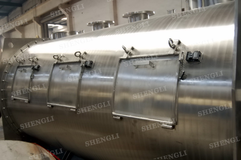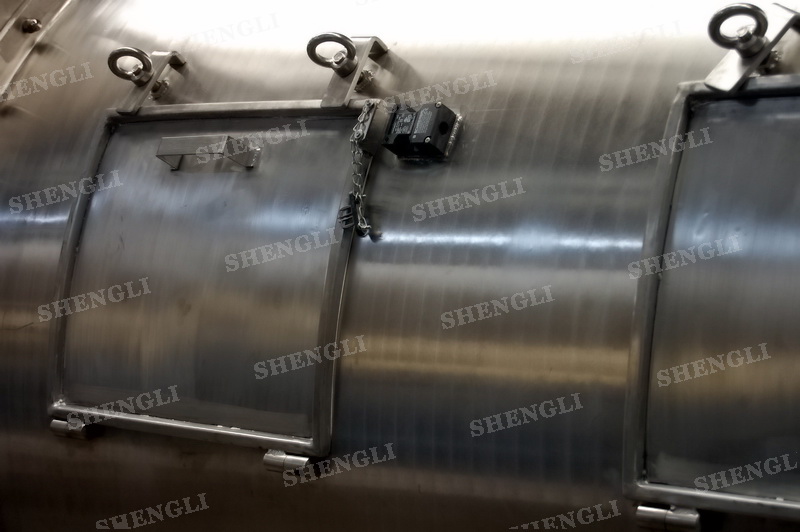 設(shè)備配置:配置R系列減速機(jī),直角安裝;搭載三臺(tái)3000轉(zhuǎn)每分鐘的高速飛刀;筒體外設(shè)導(dǎo)熱介質(zhì)夾套;筒側(cè)開設(shè)快開式檢修門附安全開關(guān);出料口采用氣動(dòng)翻板閥;主軸與飛刀主軸采用氣密封;筒體上設(shè)氣動(dòng)在線取樣閥;設(shè)備內(nèi)表面鏡面拋光、外表面拉絲亞光。