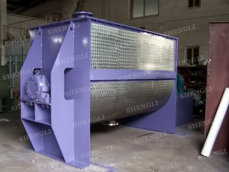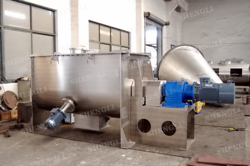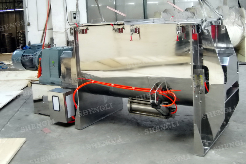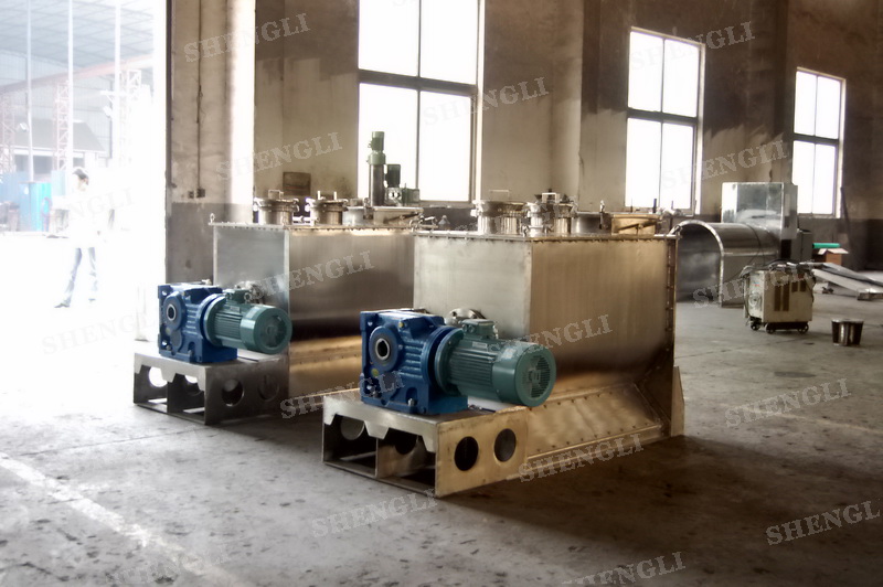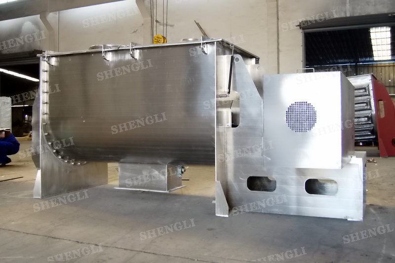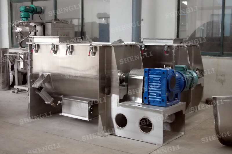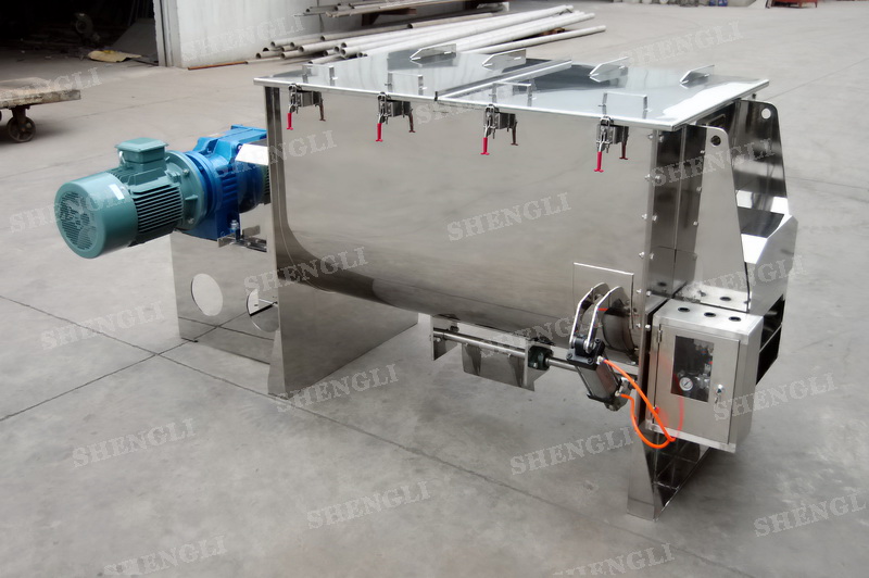 工作原理:螺帶混合機采用U型筒體,內(nèi)裝平行主軸,主軸上安裝正反雙向的盤條螺帶,不同維度螺帶分內(nèi)螺帶與外螺帶,物料在螺帶的驅(qū)使下反復(fù)參混,能夠快速高效的混合。