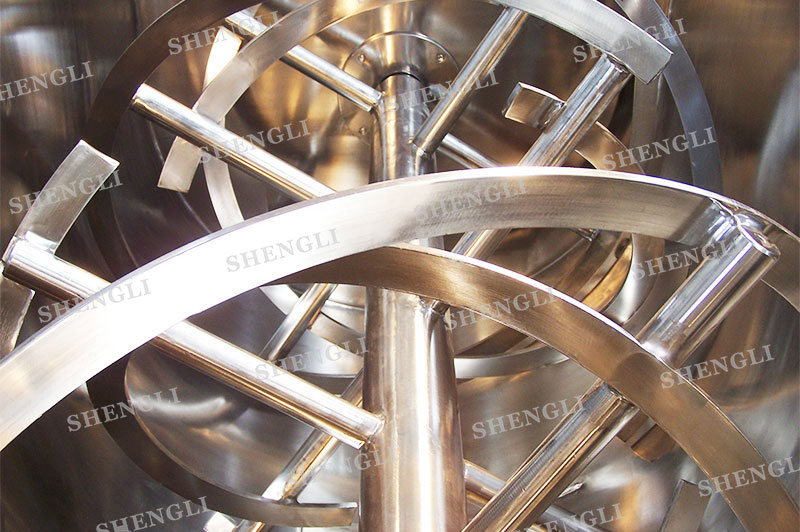 工作原理:螺帶混合機采用U型筒體,內(nèi)裝平行主軸,主軸上安裝正反雙向的盤條螺帶,不同維度螺帶分內(nèi)螺帶與外螺帶,物料在螺帶的驅(qū)使下反復(fù)參混,能夠快速高效的混合。