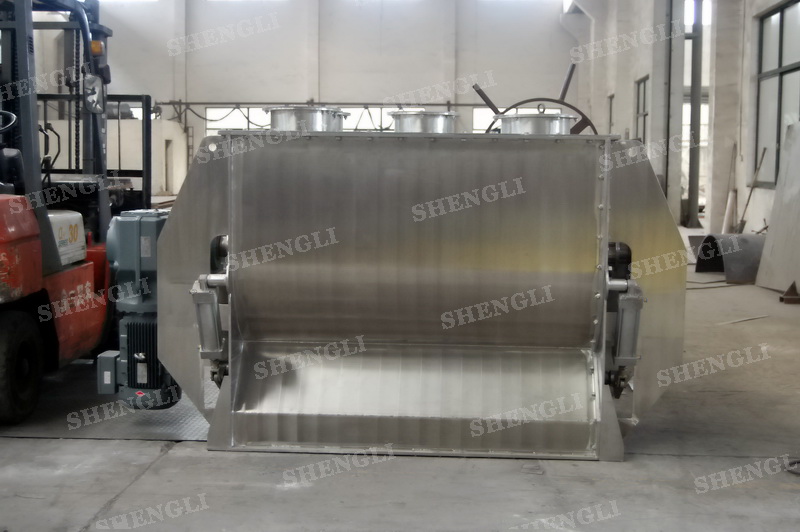 工作原理:螺帶攪拌機采用U型筒體,內(nèi)裝平行主軸,主軸上安裝正反雙向的盤條螺帶,不同維度螺帶分內(nèi)螺帶與外螺帶,物料在螺帶的驅(qū)使下反復參混,能夠快速高效的混合。