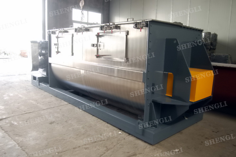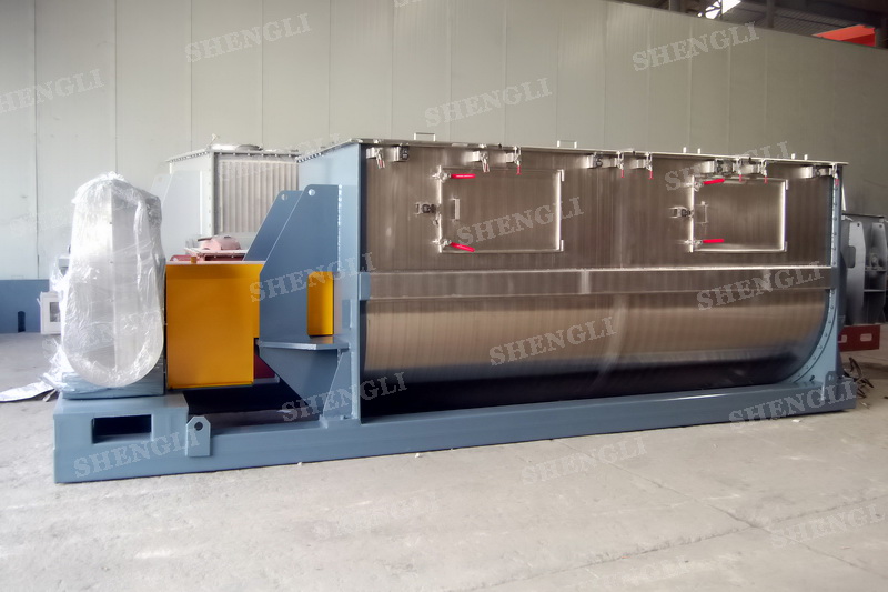 工作原理:螺帶臥式混合機(jī)采用U型筒體,內(nèi)裝平行主軸,主軸上安裝正反雙向的盤條螺帶,不同維度螺帶分內(nèi)螺帶與外螺帶,物料在螺帶的驅(qū)使下反復(fù)參混,能夠快速高效的混合。