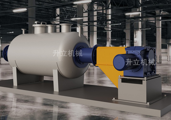 具有臥式筒體,內(nèi)裝螺帶旋轉(zhuǎn)軸,軸上內(nèi)、外螺帶相互推送物料,攪刀快速翻轉(zhuǎn)物料,在高溫狀態(tài)下使物料不停運(yùn)動實現(xiàn)動態(tài)均勻受熱。