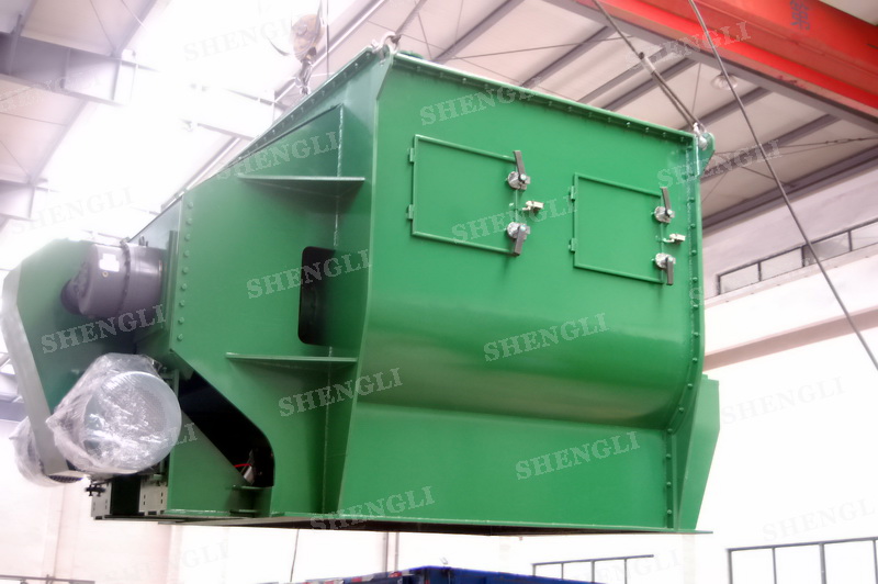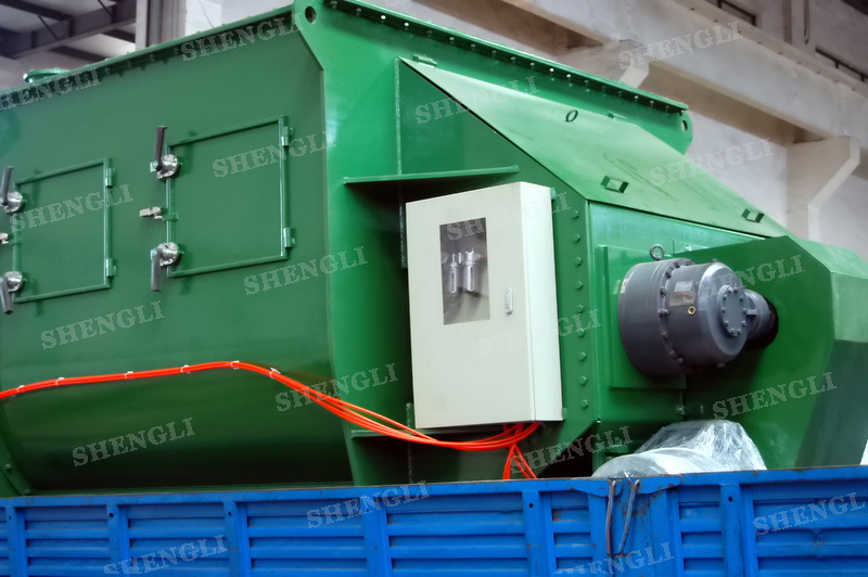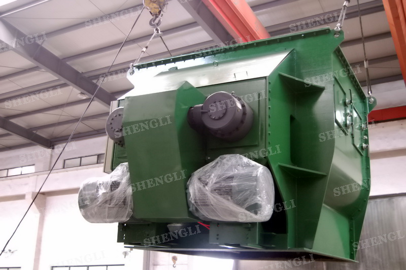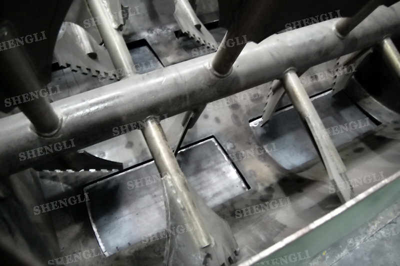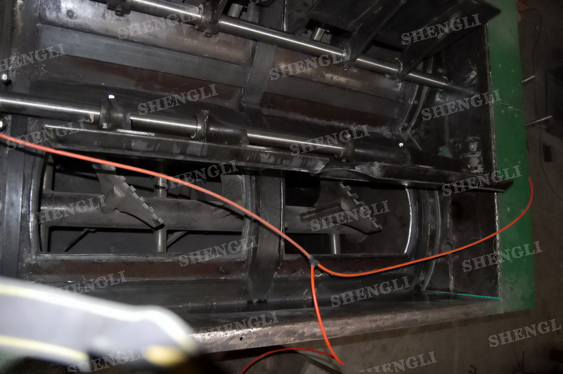 工作原理:雙軸攪拌設(shè)備采用雙U型筒體,內(nèi)裝平行的雙主軸,主軸設(shè)有對稱的多組槳葉,其雙軸的運行軌跡部分重合形成嚙合空間,雙軸在受雙電機(jī)同步驅(qū)動,同步的對稱向外翻攪物料,致使物料能夠達(dá)到瞬間失重點,該設(shè)備具備高效物料無差別的混合能力。